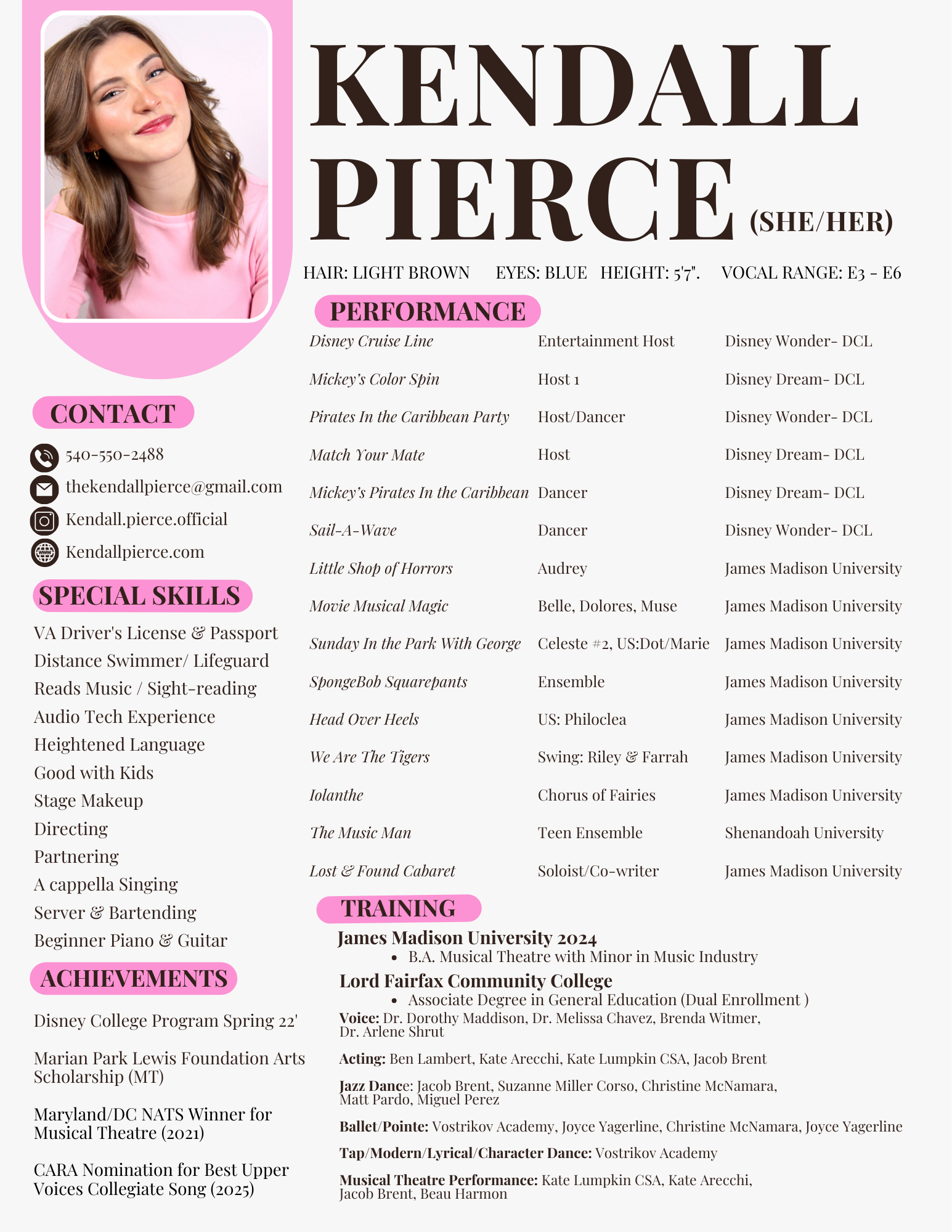Kendall Pierce Downloadable Headshot & Resume